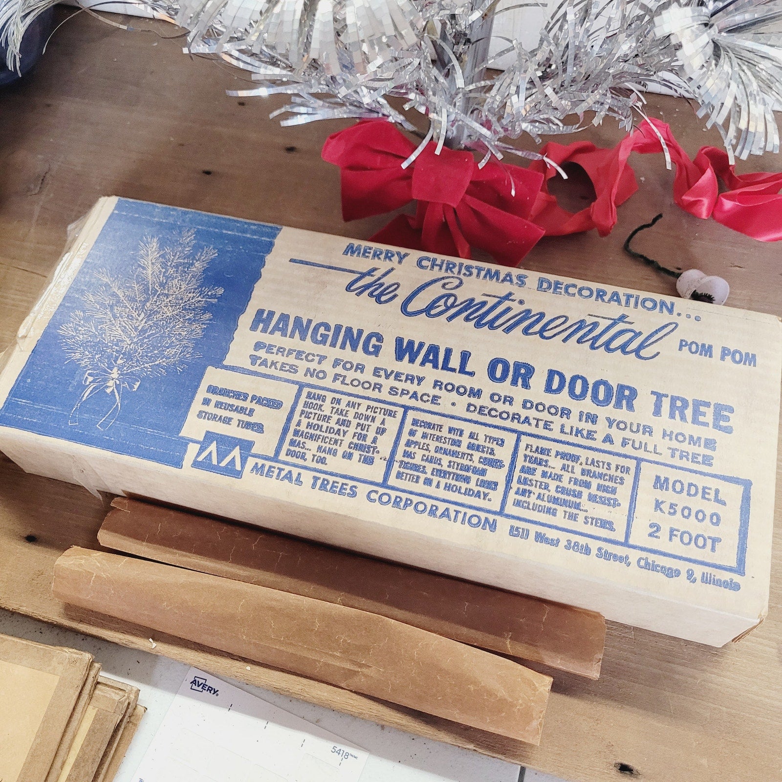 1950s Aluminum Pom Pom Hanging Christmas Tree | Wall Door Tree | 2 Ft Box #K5000