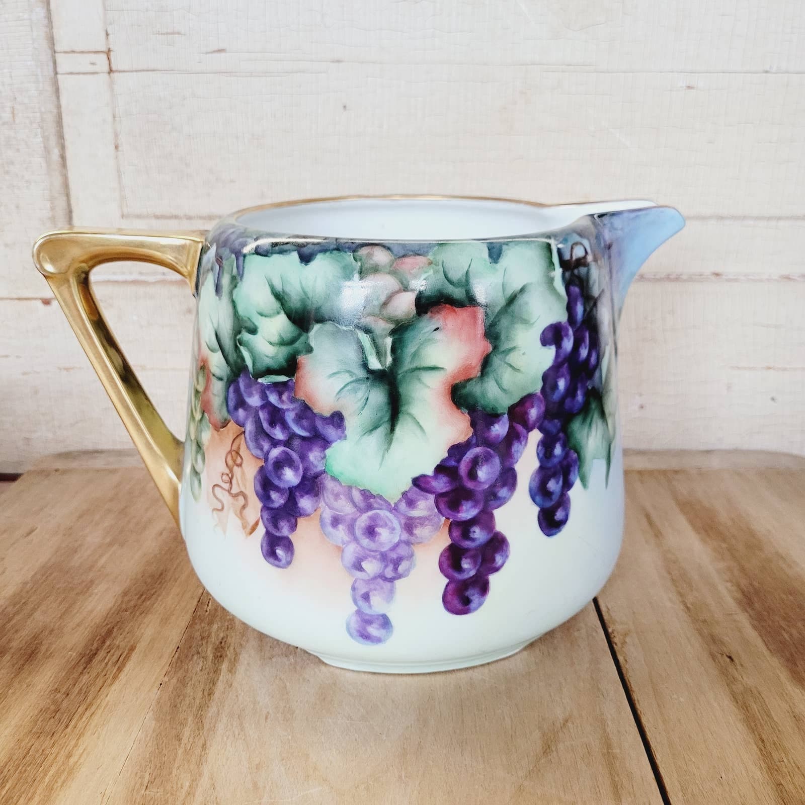 Antique Cider Lemonade Pitcher with Grapes Signed from Germany