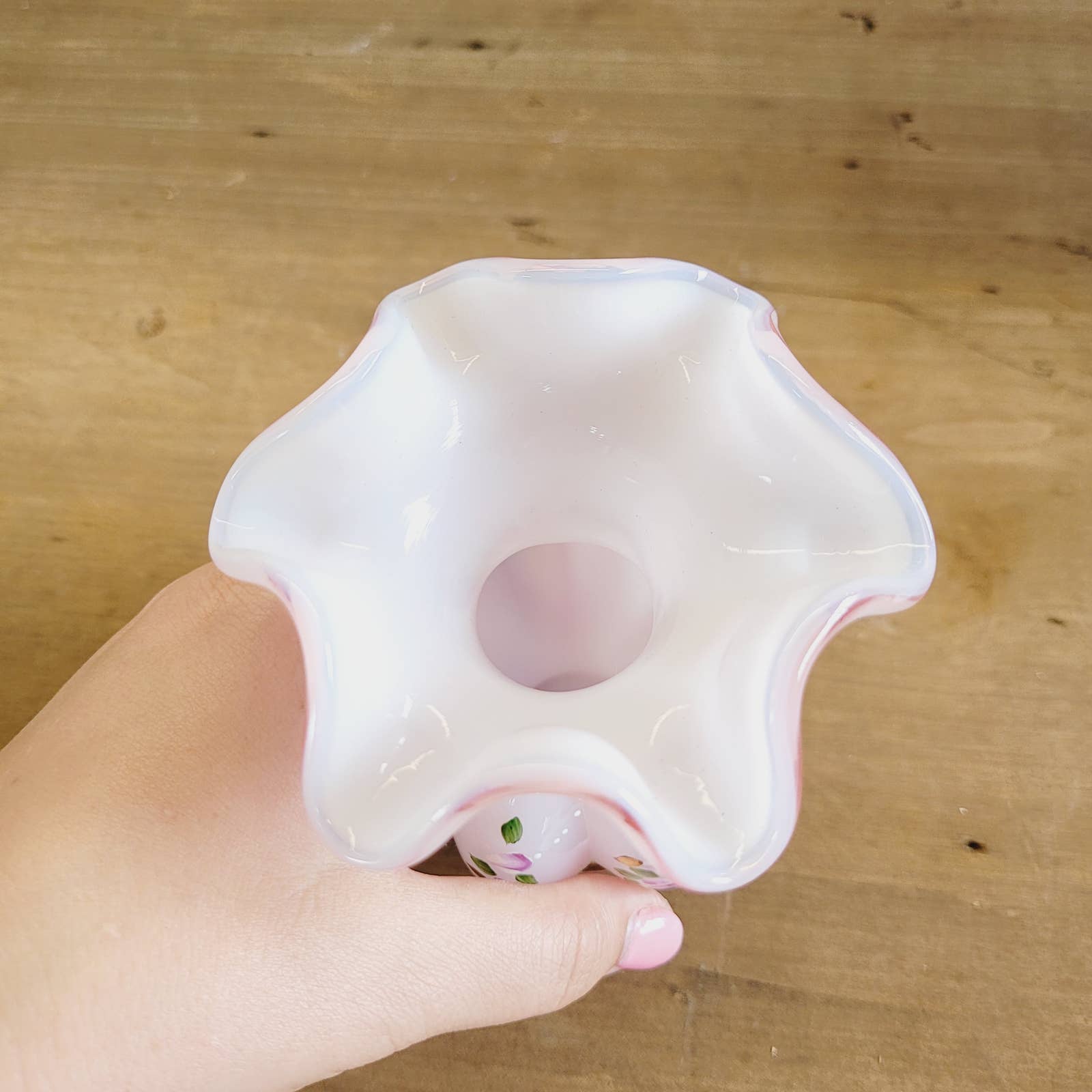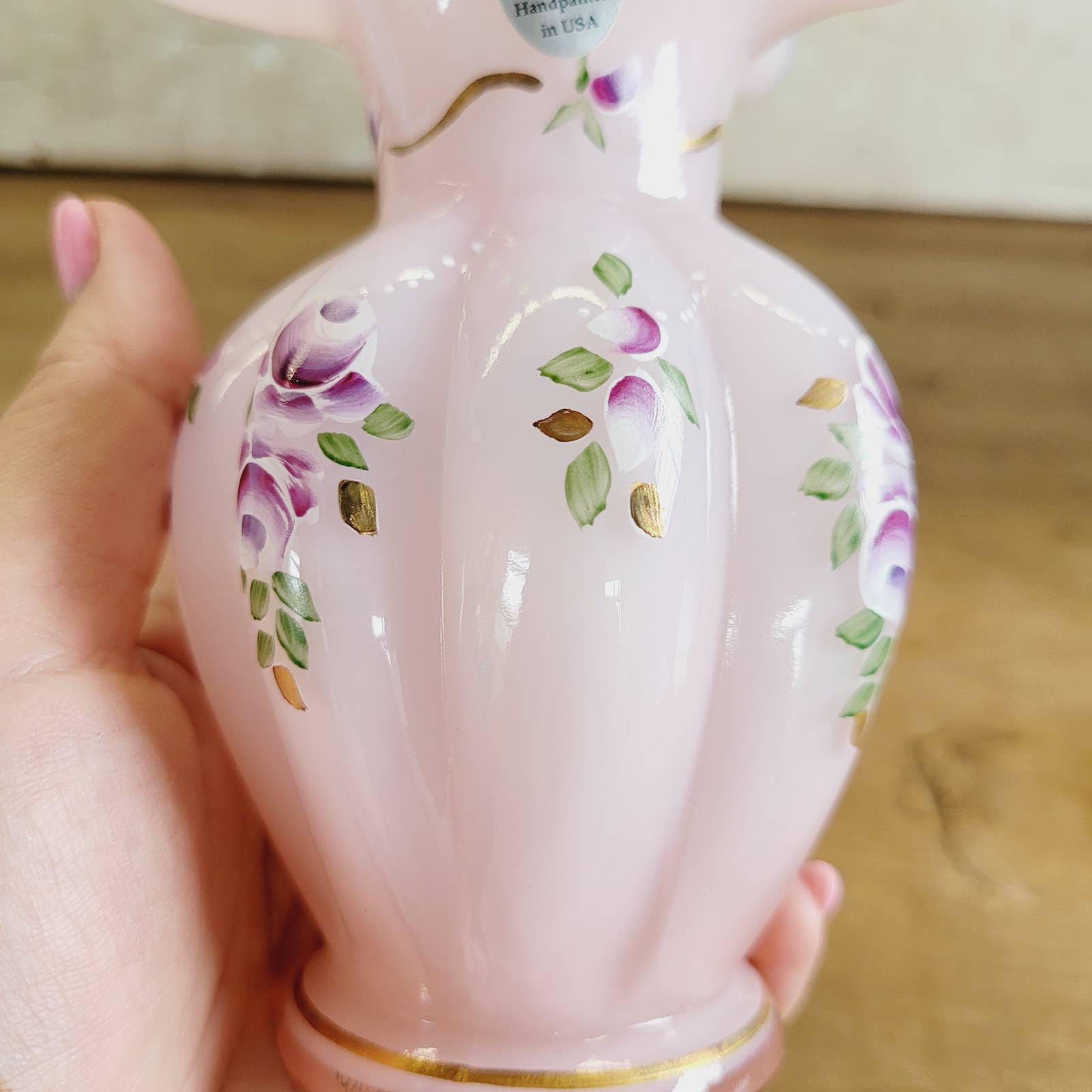 Fenton Art Glass Charleton Collection Pink Melon Vase Signed