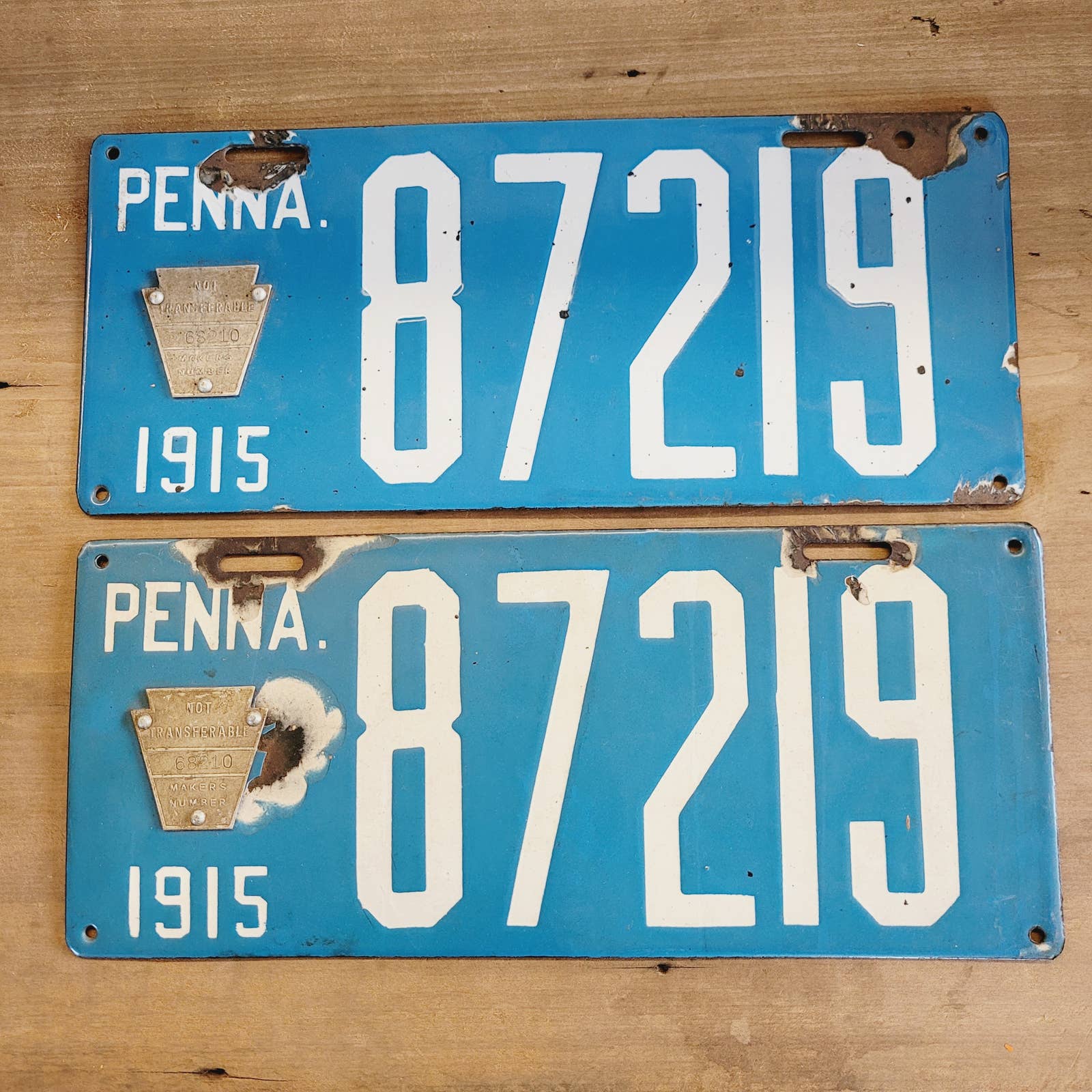 Pair 1915 PORCELAIN PENNSYLVANIA LICENSE PLATE VINTAGE AUTOMOBILIA