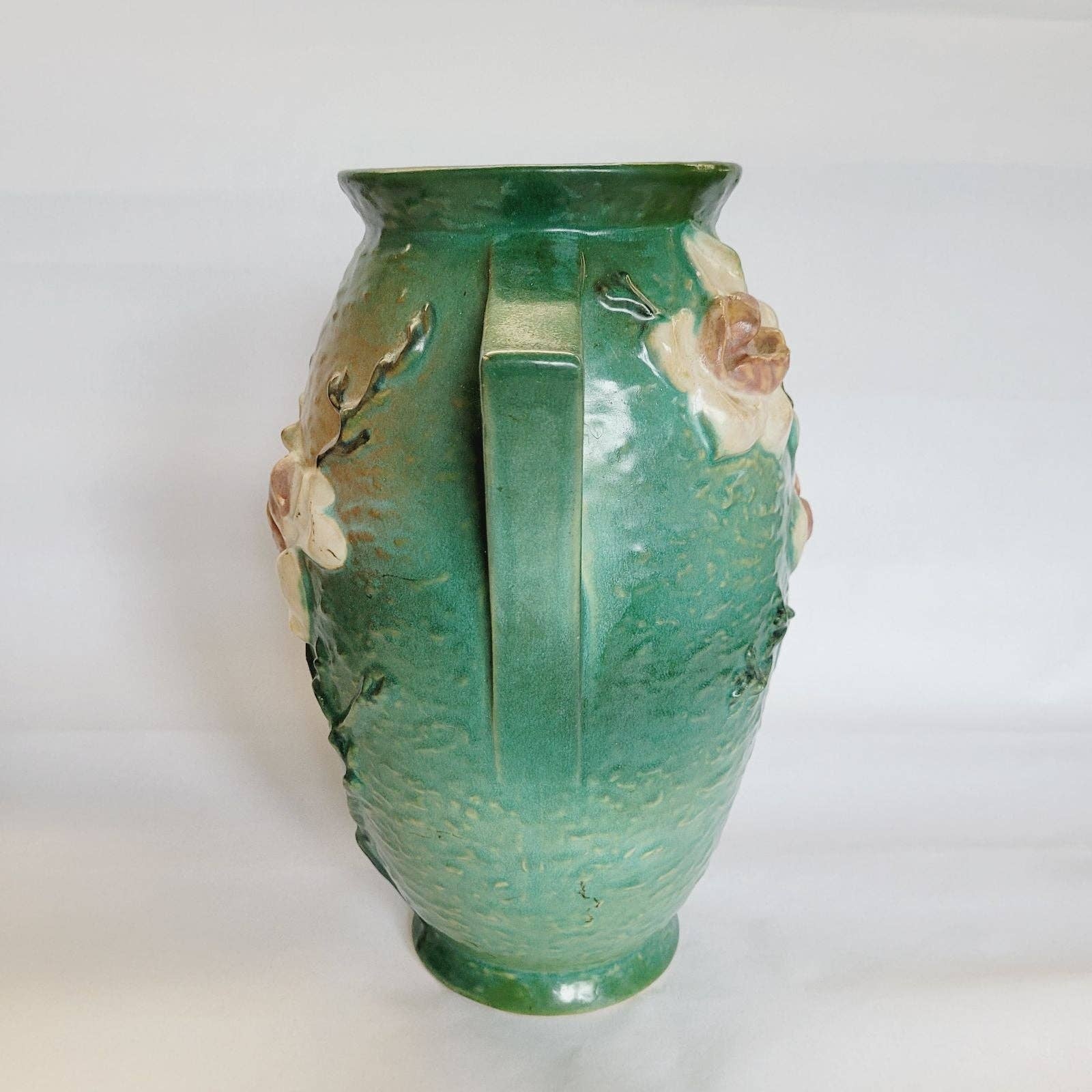 About 12 1/2" tall. Has a few black marks and scratches and a flaw on branch from when it was made (glazed over). Please see photos for further condition. Has crazing. No chips.