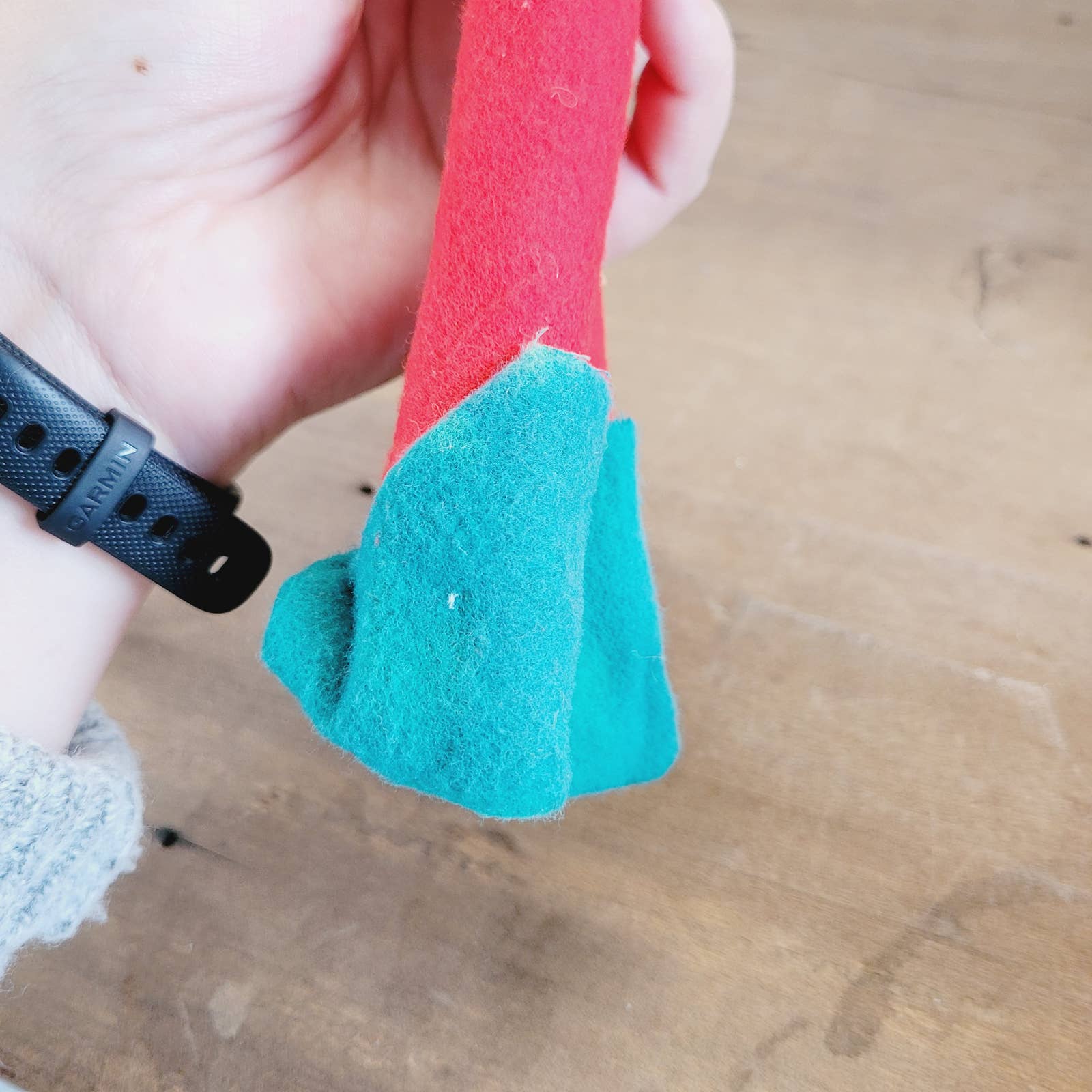 About 13" tall. Bendable. Has some fading and discoloration on green felt as shown in pics.