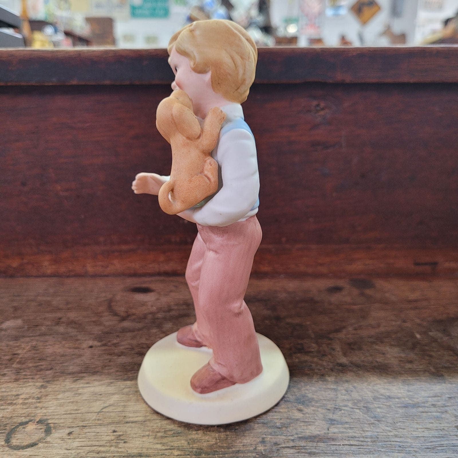 About 6 1/4" tall. Made in Japan. Avon's Best Friends Collection. Boy with puppies. No chips or cracks. A little bit of dust in crevices.