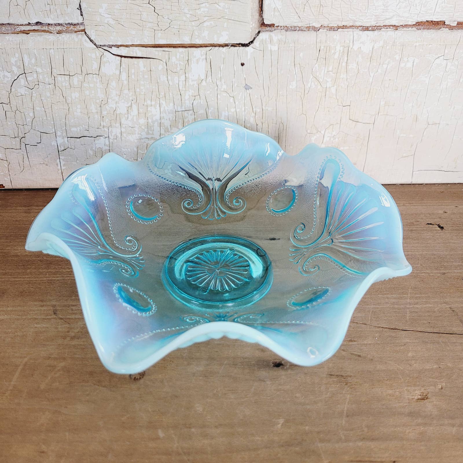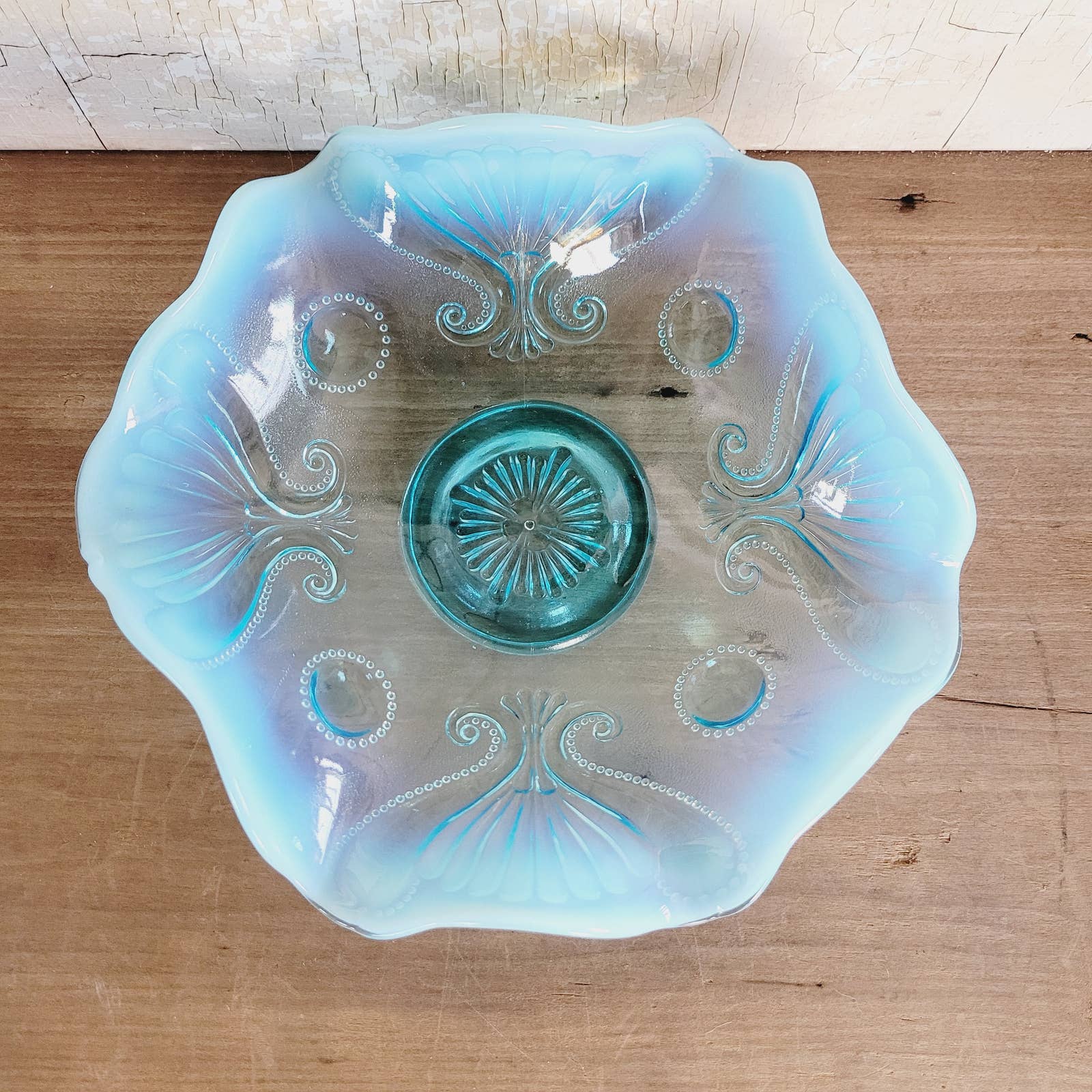 Vintage Beaded Shell Opalescent Blue Pedestal Bowl
