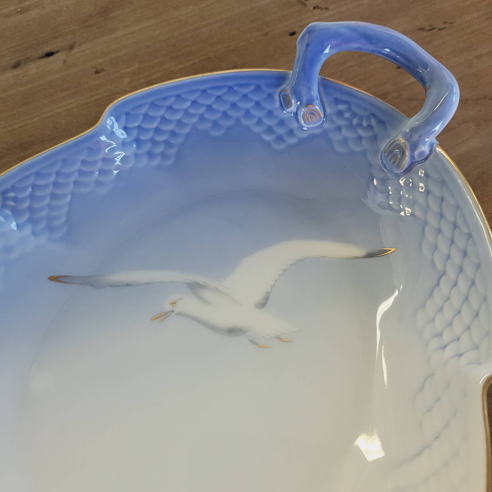 About 10" x 7 1/2". No chips or cracks. Minor paint loss on gilding. Marked B&G Denmark 199. Please see photos for further condition as they are part of the description.
