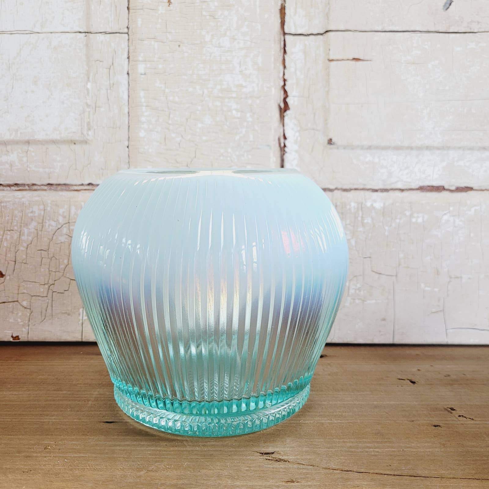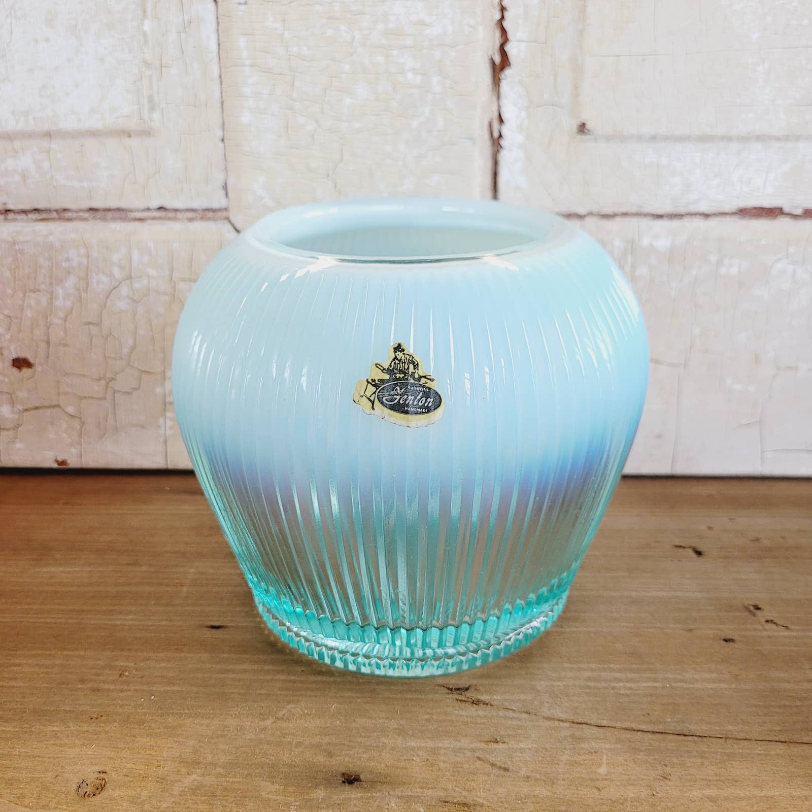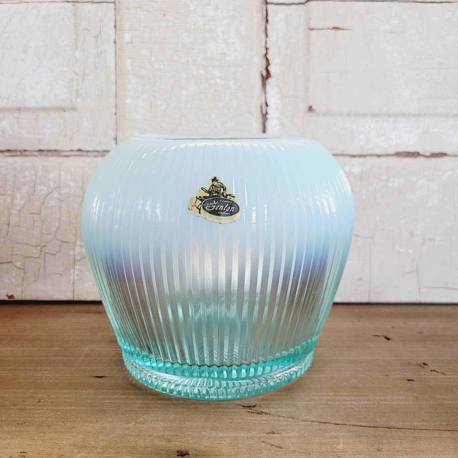 Vintage Fenton Sheffield Teal Ribbed Opalescent Glass Bowl Vase