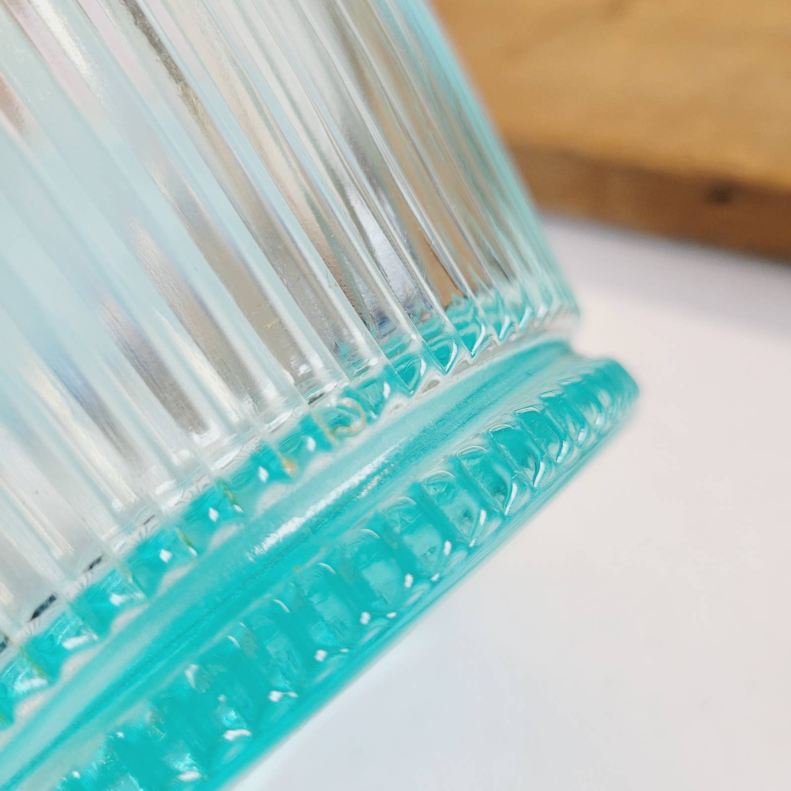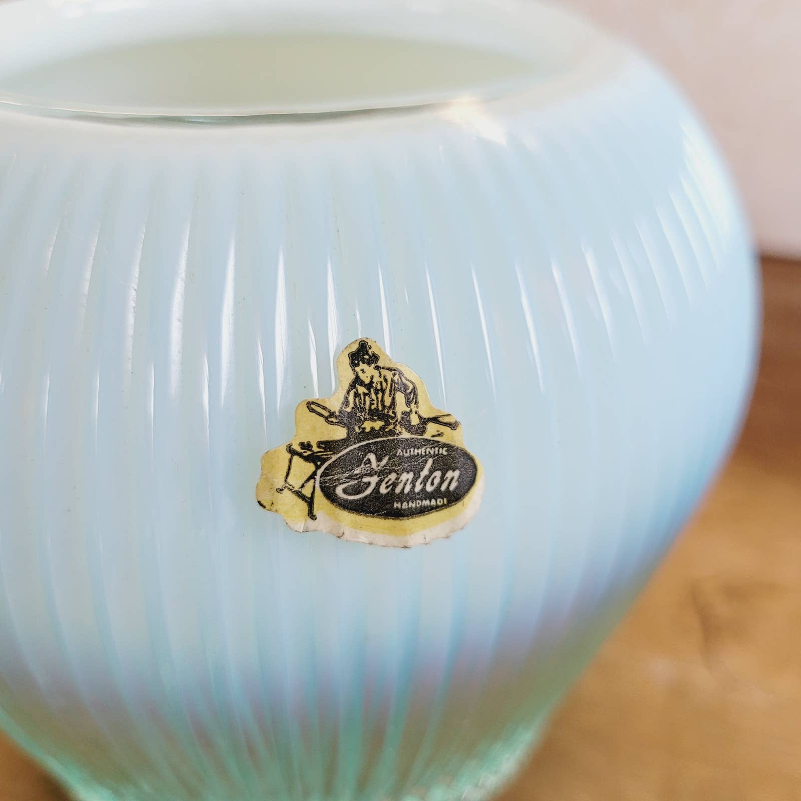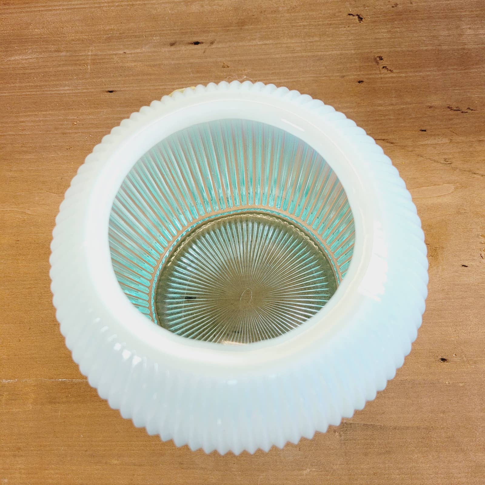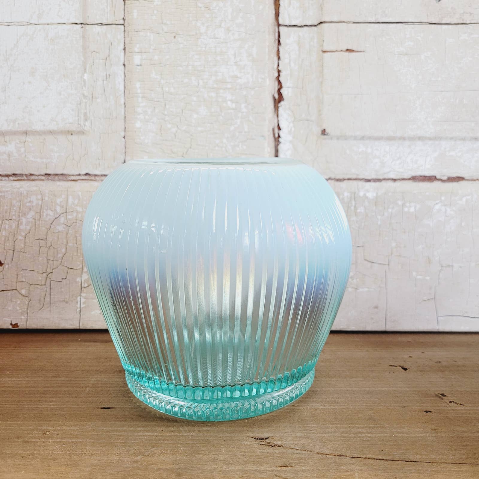 Vintage Fenton Sheffield Teal Ribbed Opalescent Glass Bowl Vase