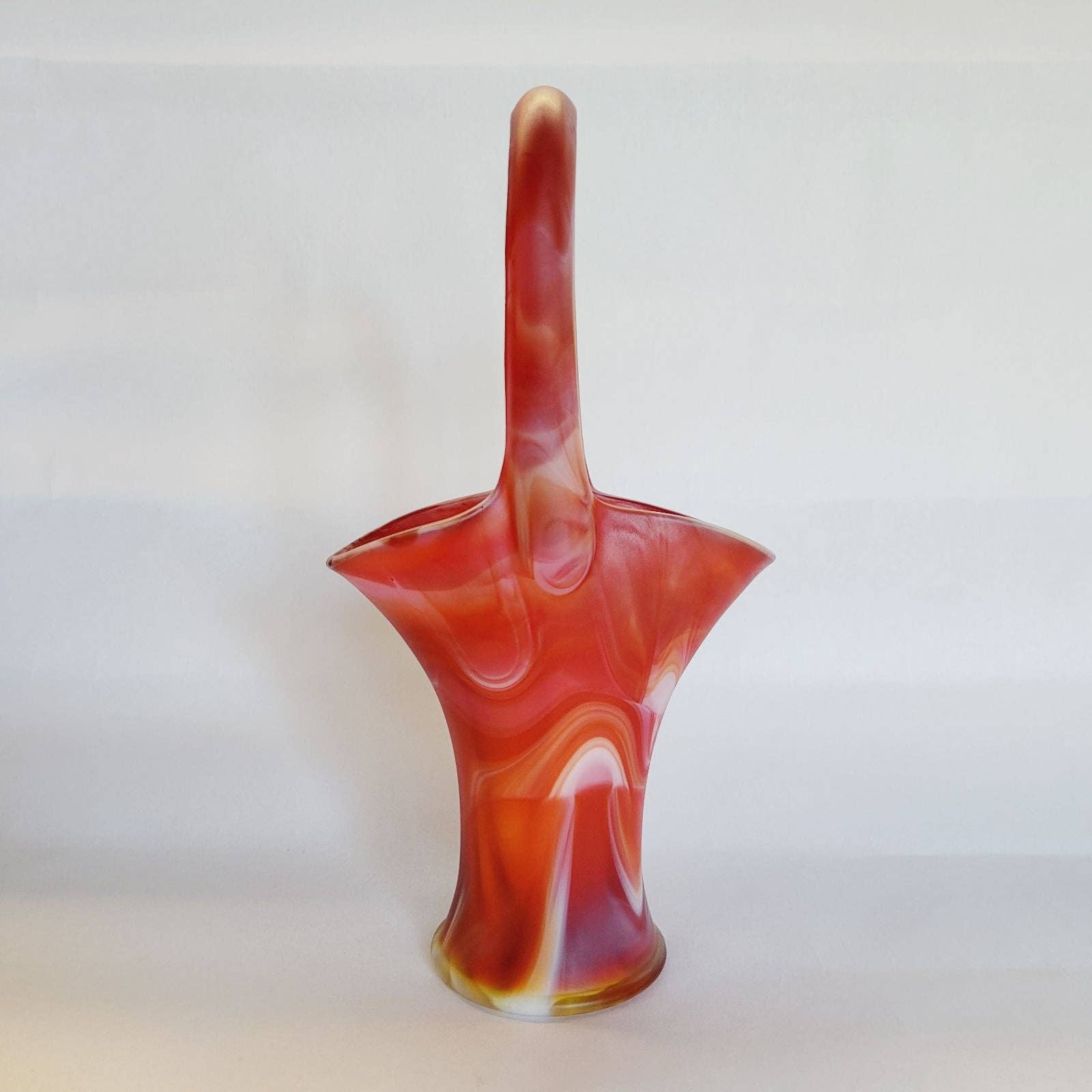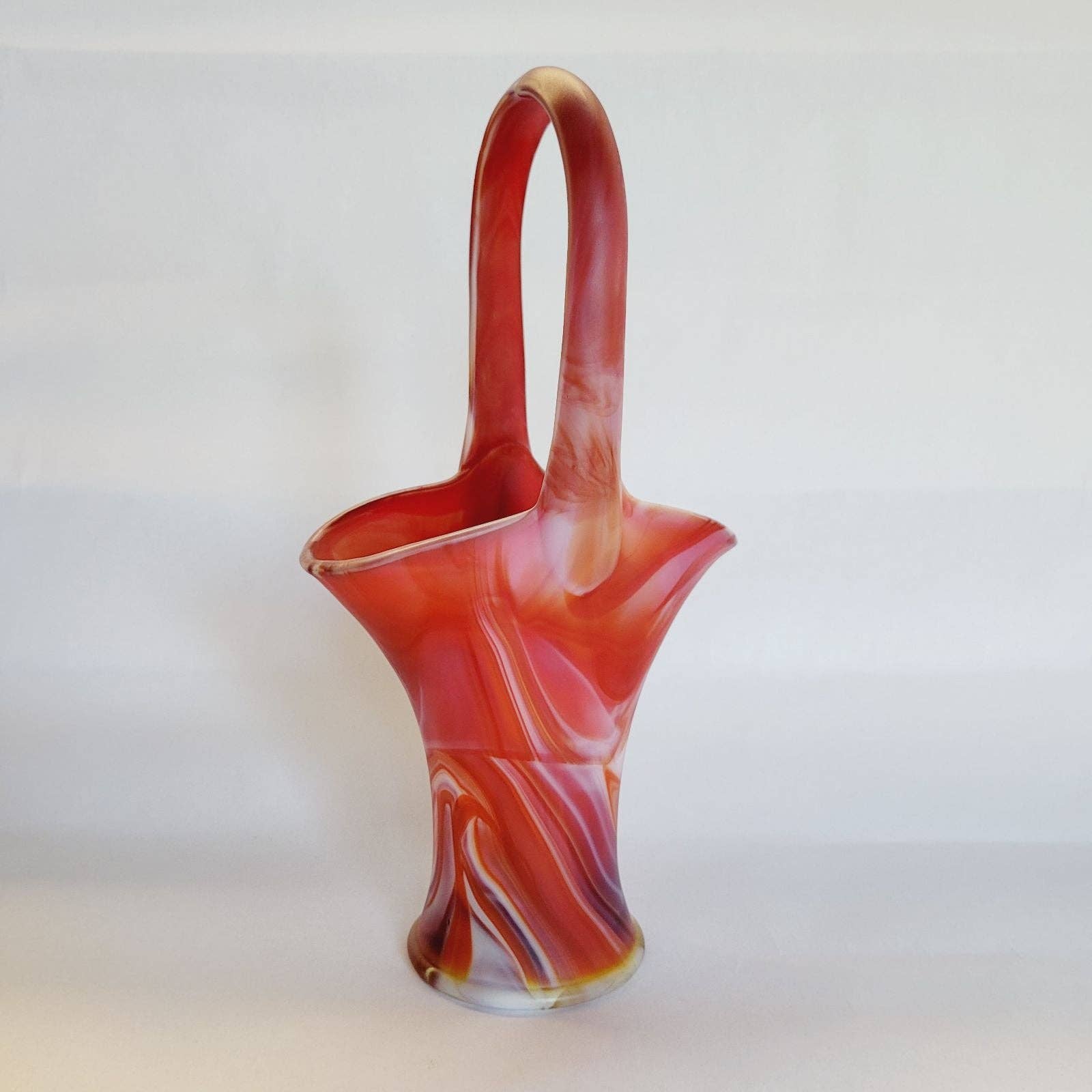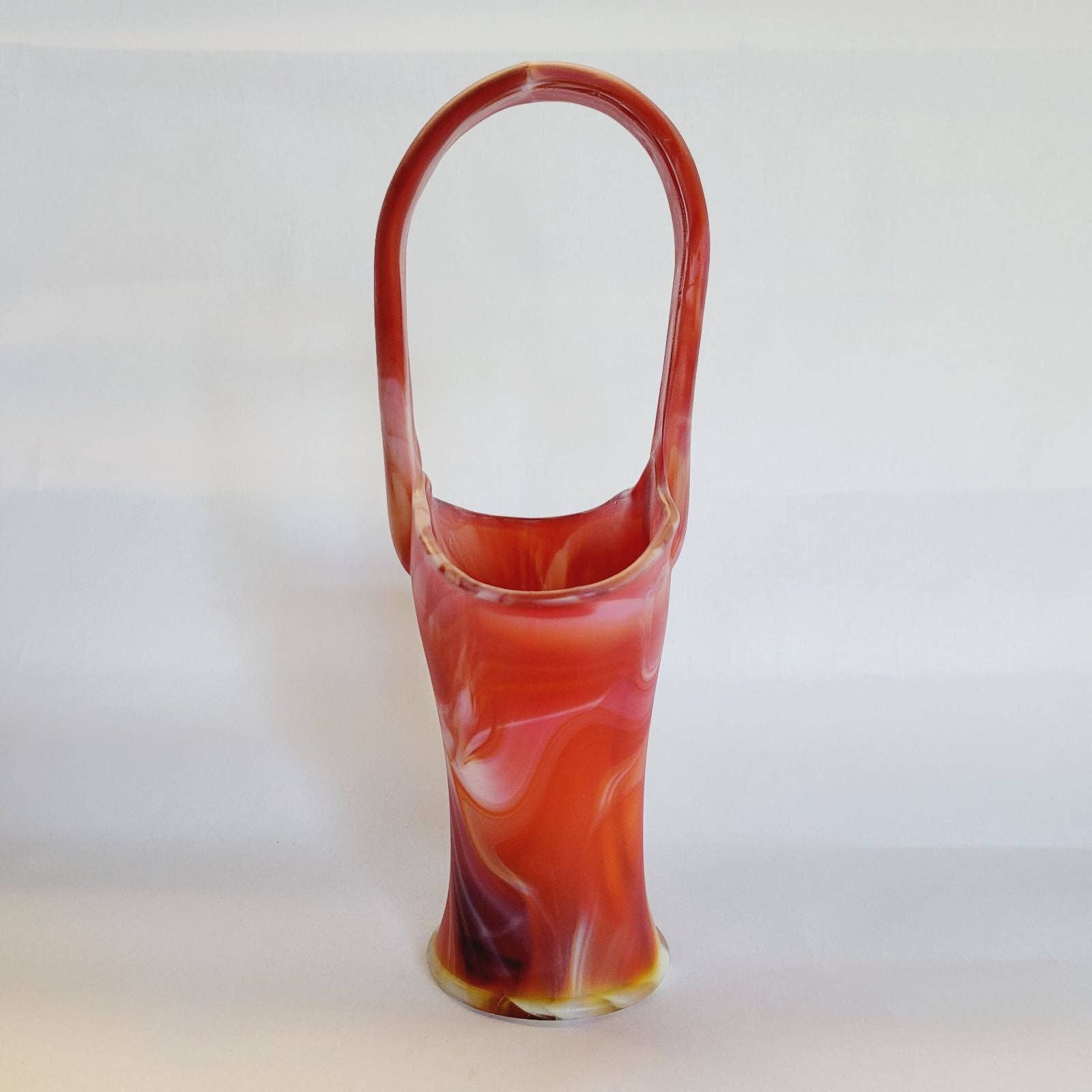 Vintage Imperial RED SLAG OLDEN END O'DAY Glass BASKET 10"