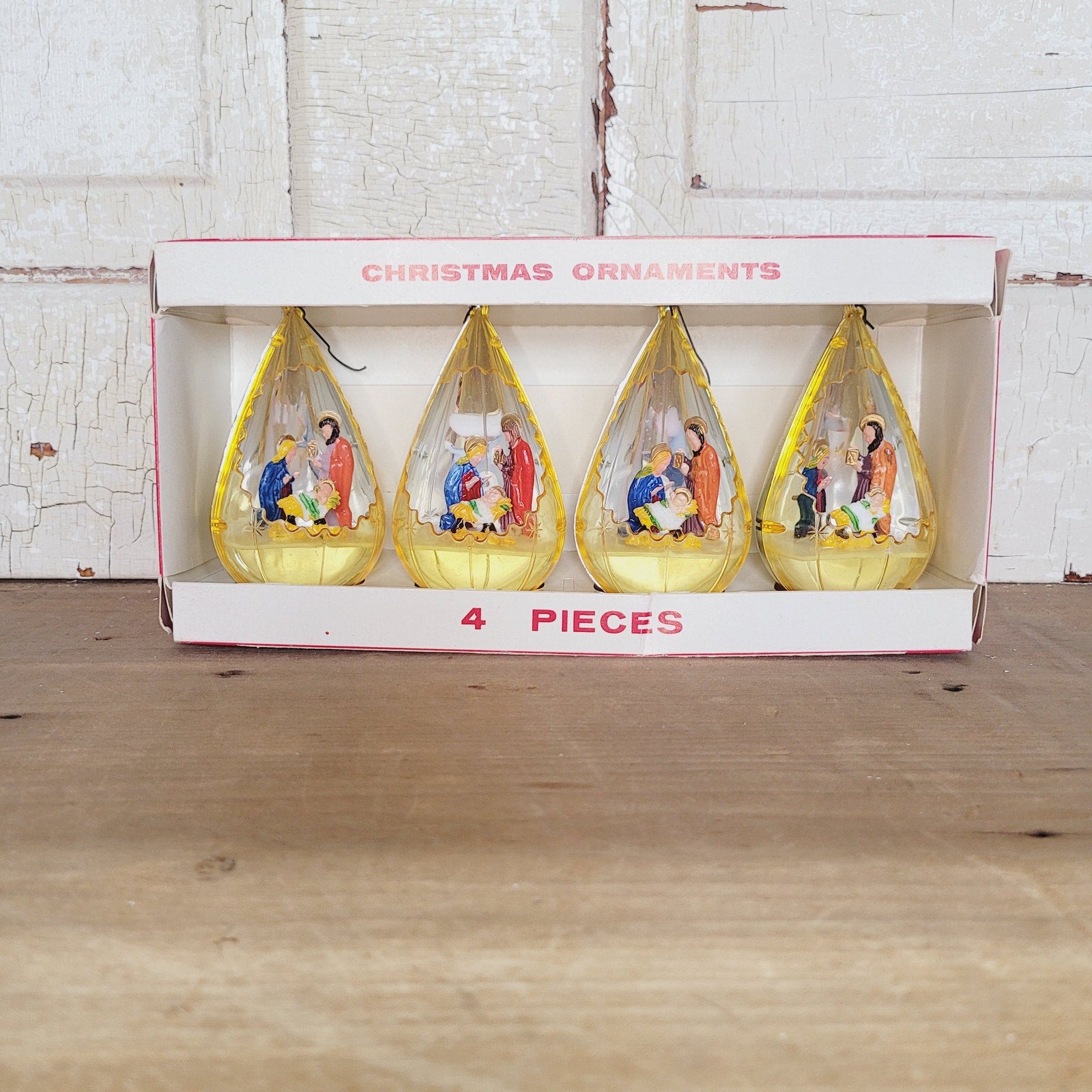 Vintage Jewel Brite Nativity Diorama Christmas Ornaments Set of 4 with Box