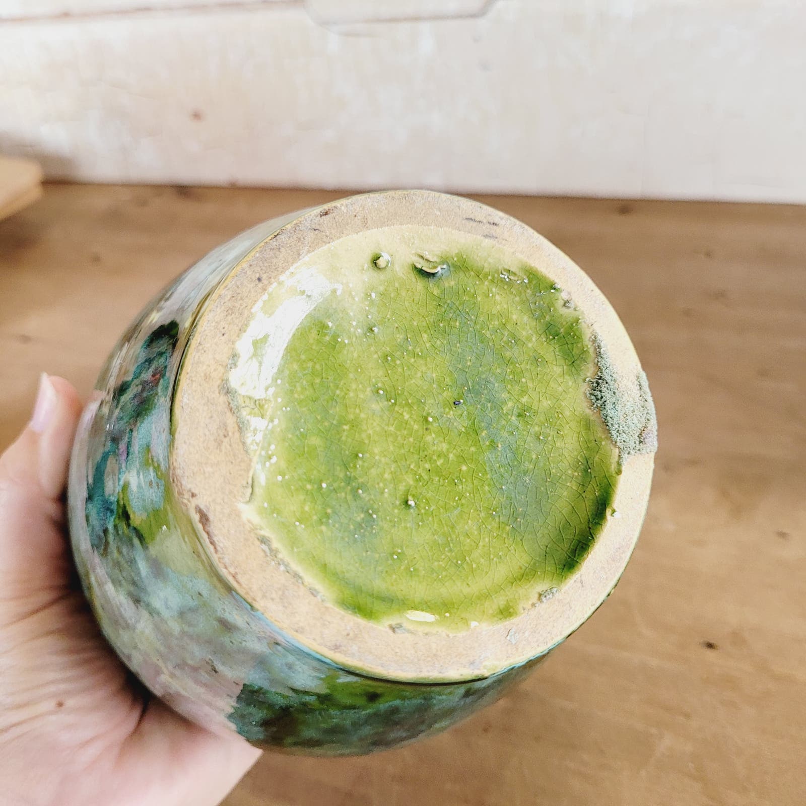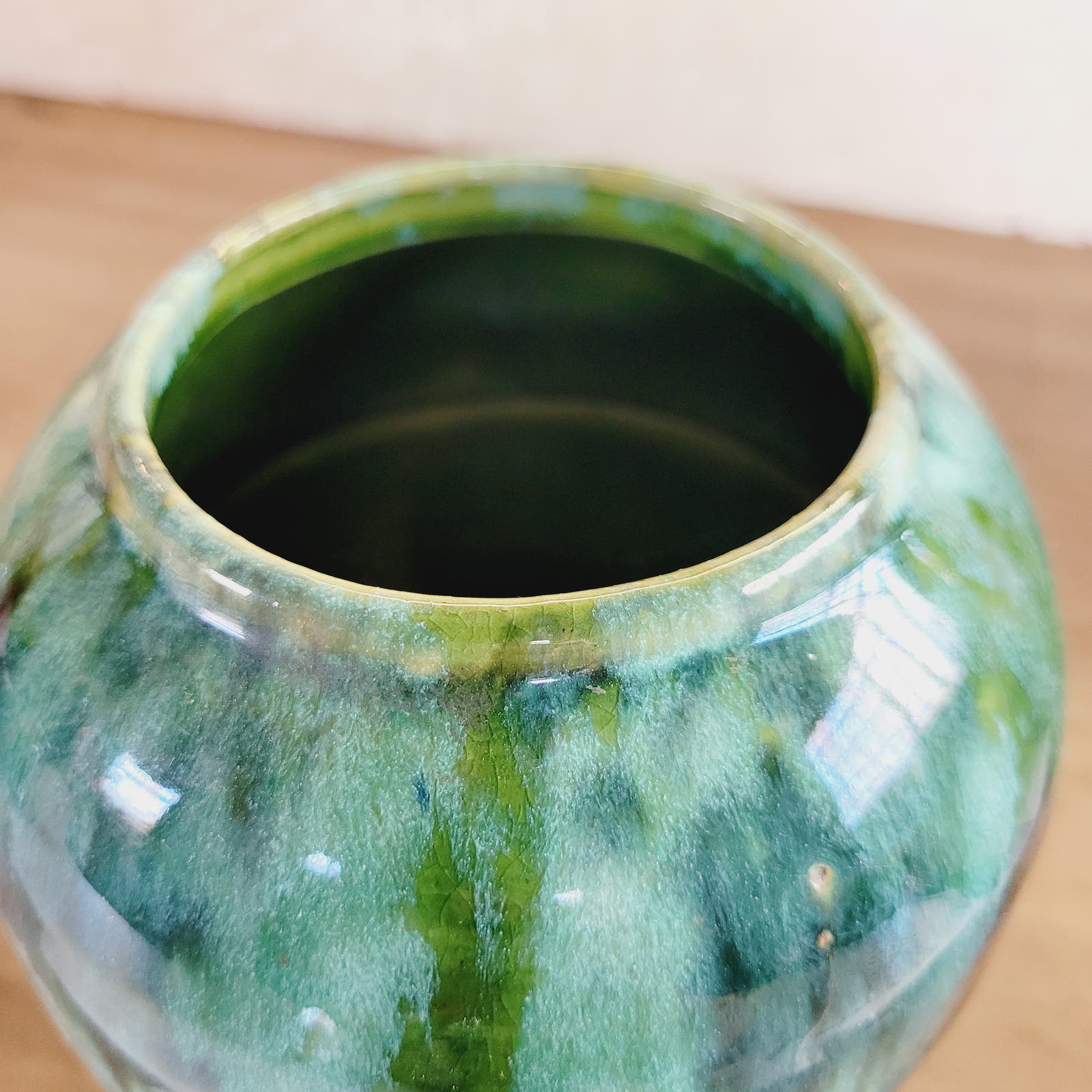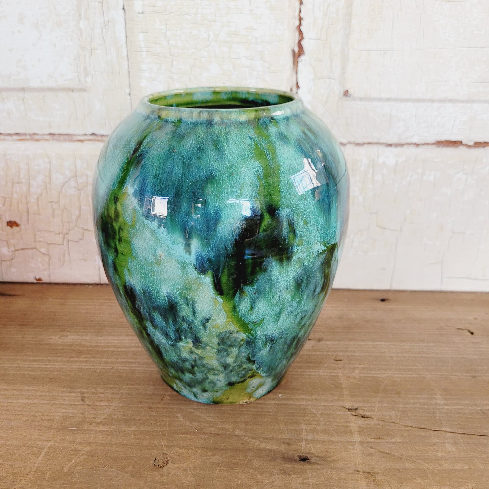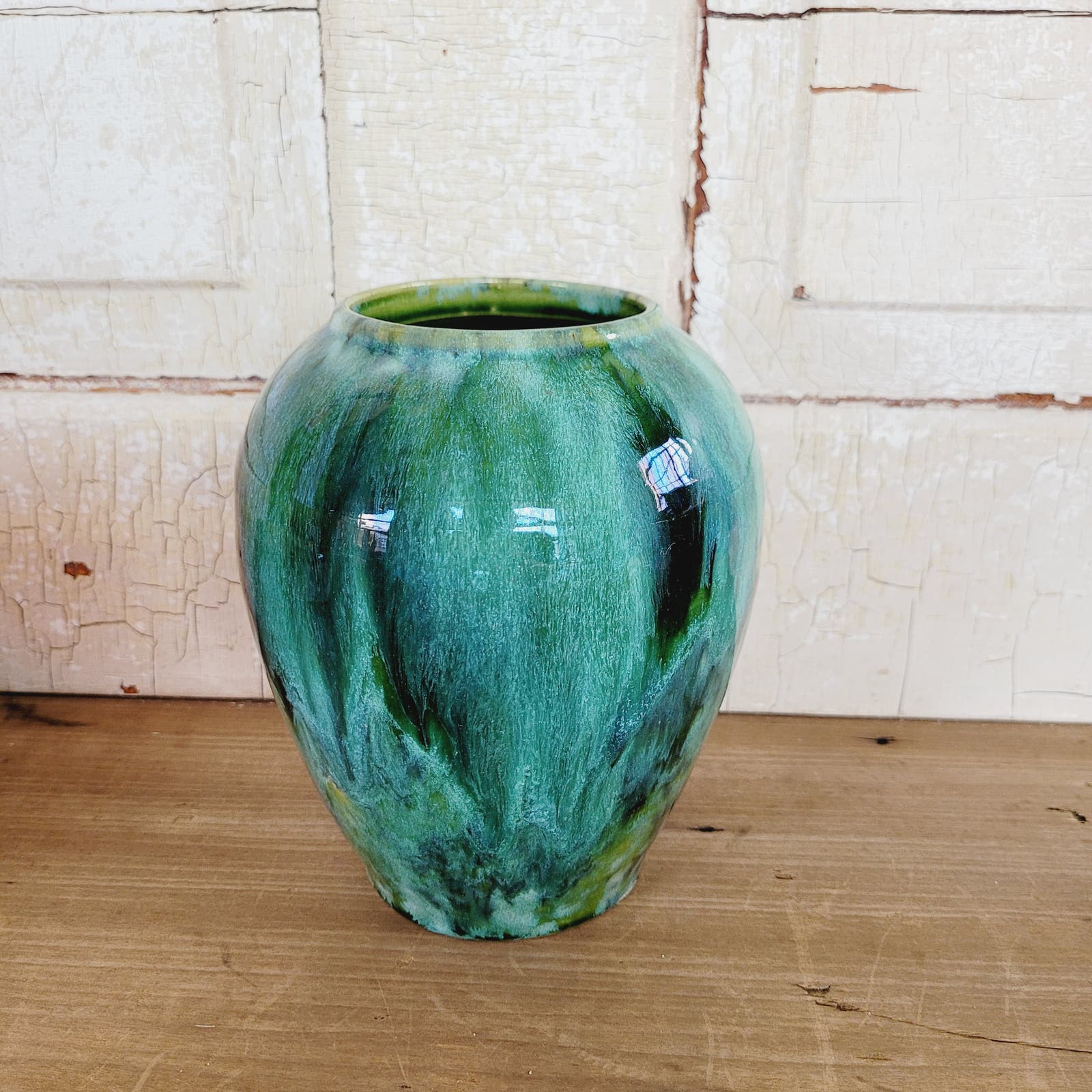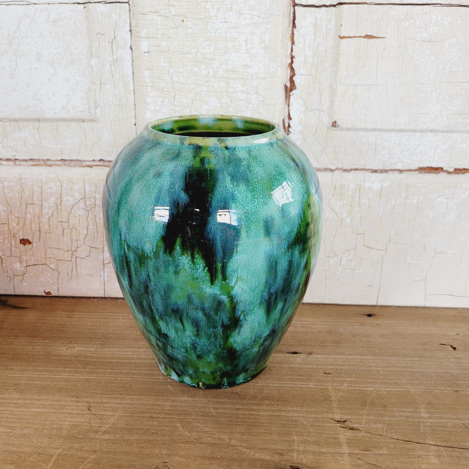 The Vintage McCoy Green Onyx Vase is a timeless collectible, standing at approximately 6 1/4 inches in height. This exquisite piece is characterized by its enduring beauty, showcasing great condition with no chips or cracks other than crazing. Crafted with precision and care, it's a stunning example of McCoy Pottery's artistry and a perfect addition to any vintage pottery collection.