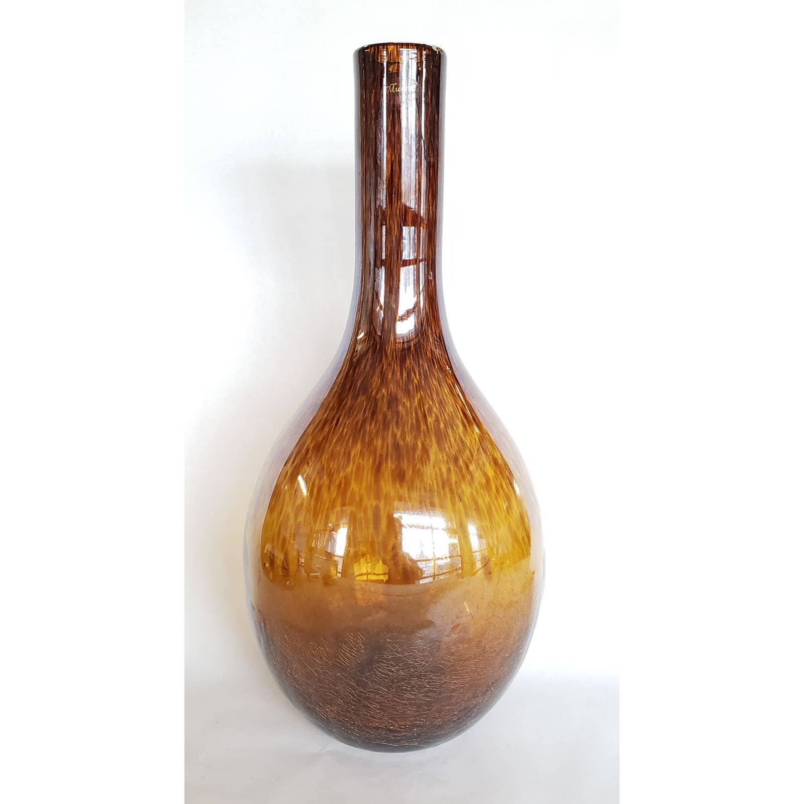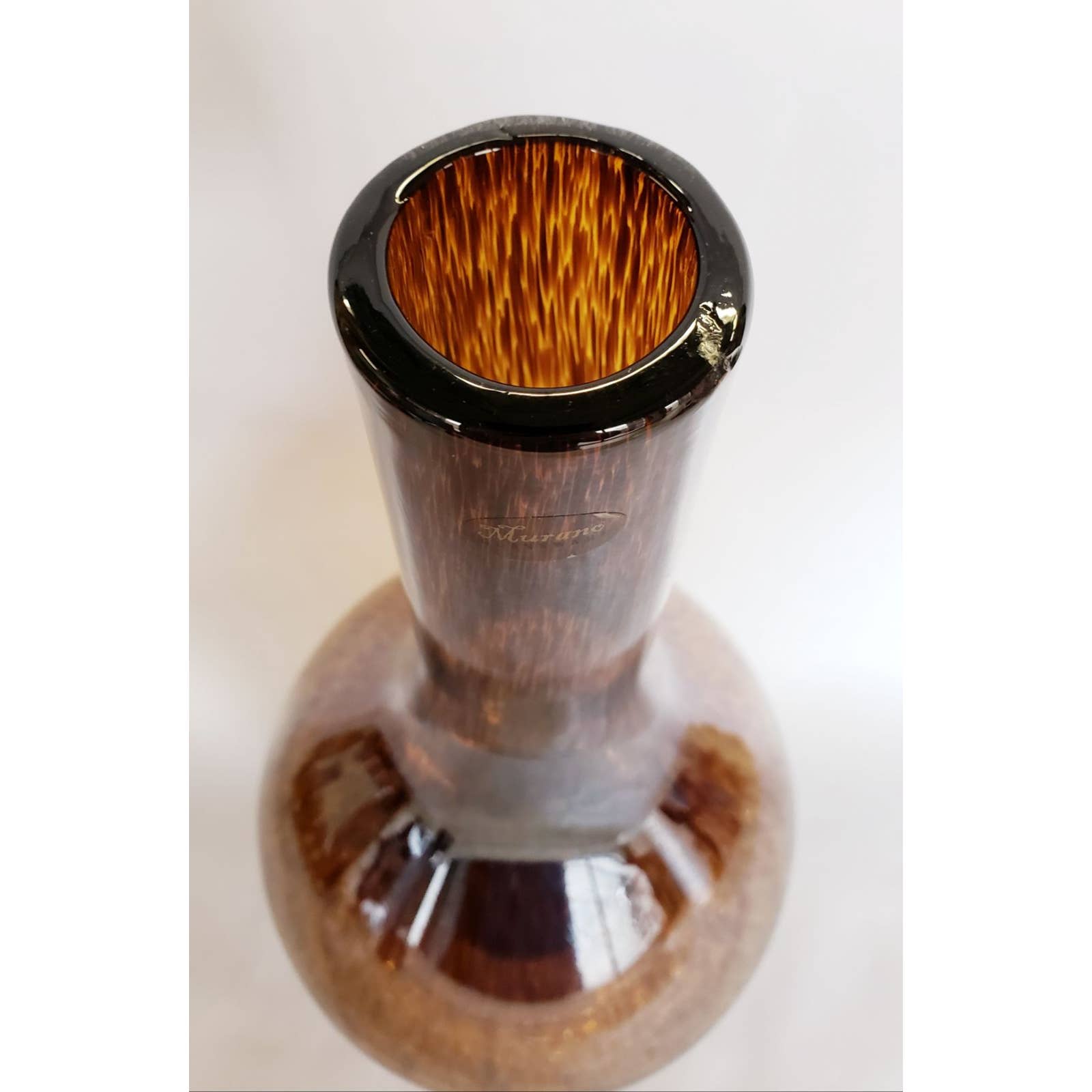 Vintage Murano Crackle Glass Vase Amber Brown 16"