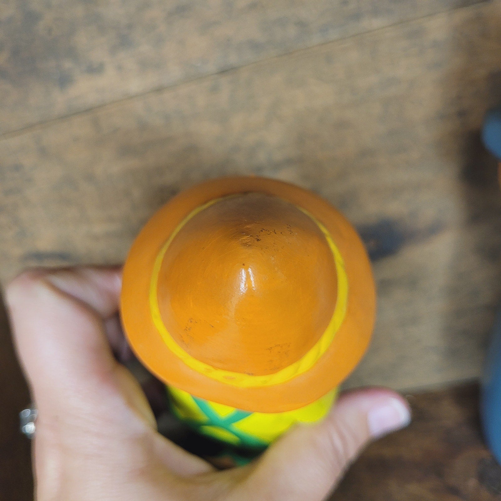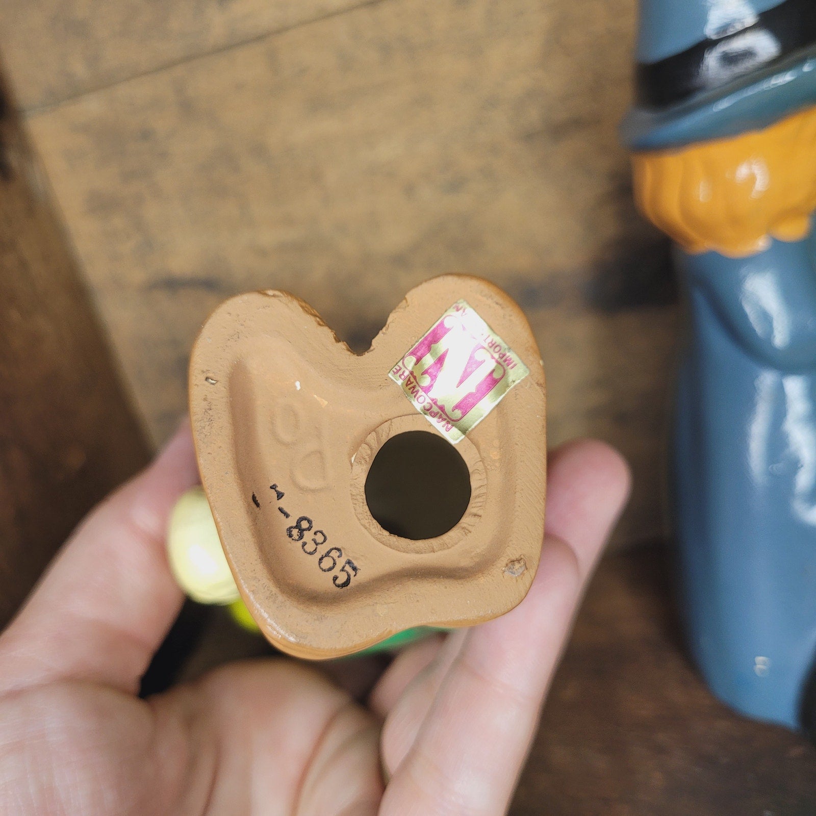Made in Japan and marked with the number 8365, both figurines still have the original Napcoware stickers on the bottom. The figures are in good vintage condition, with minor paint loss but no cracks, repairs, or major chips. The vibrant colors and whimsical designs make these a fantastic addition to any Halloween collection.