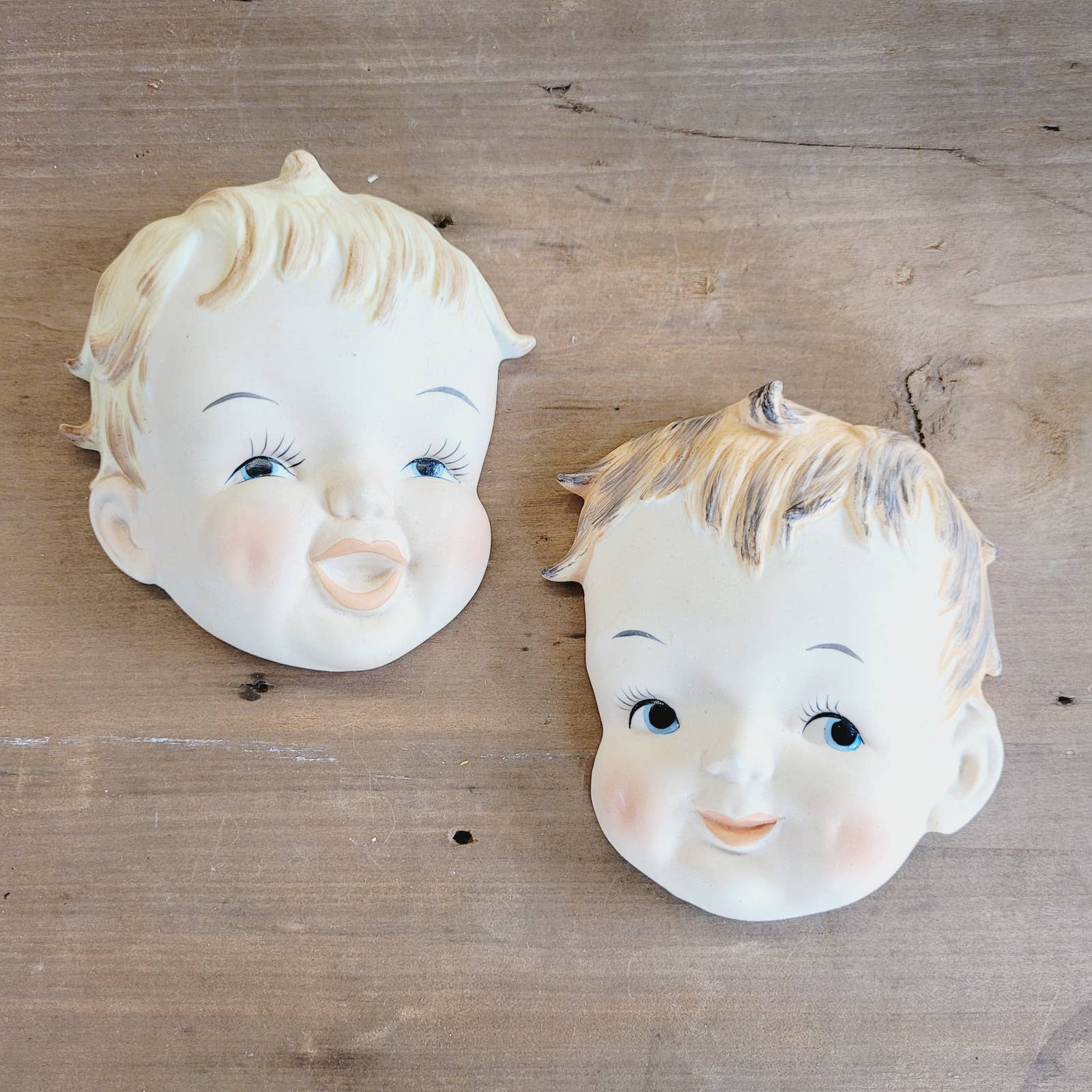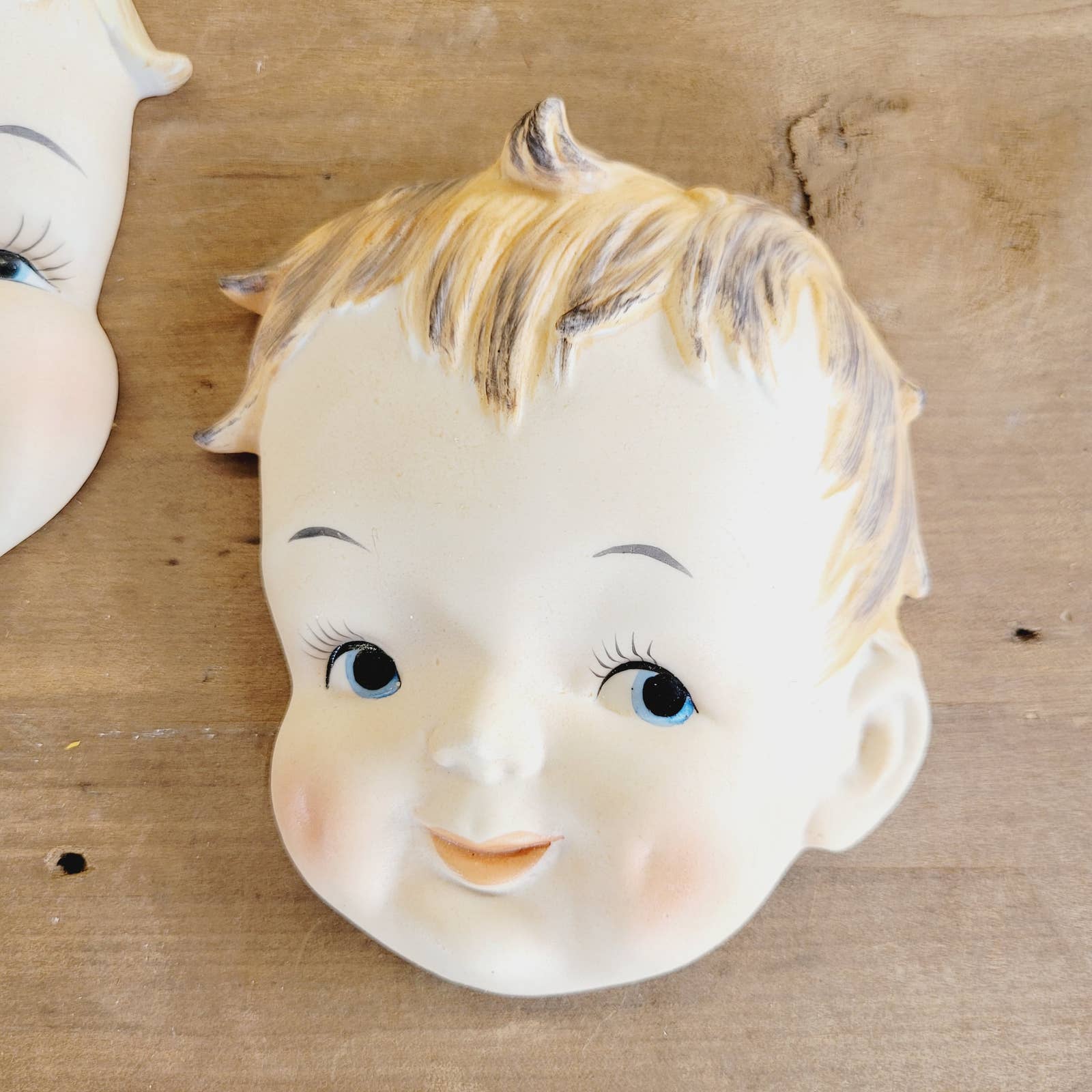 Vintage Pair of Wall Plaque Baby Faces Fremo Japan