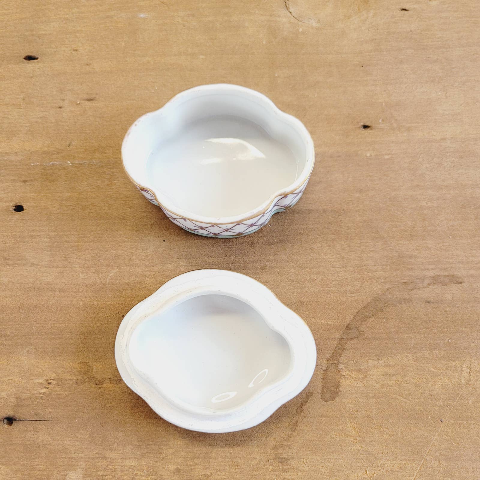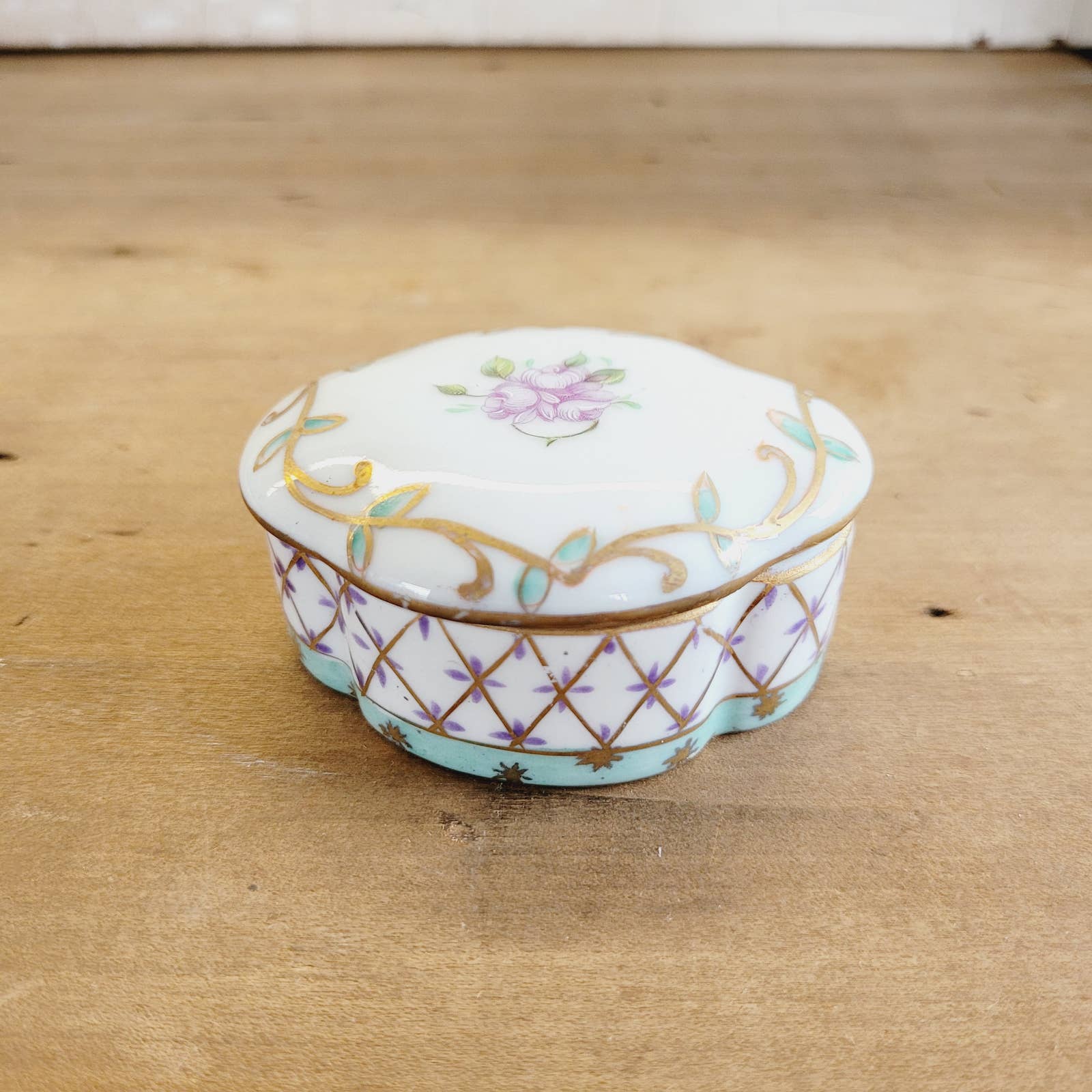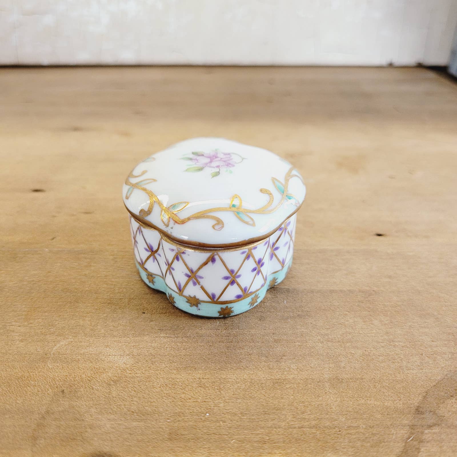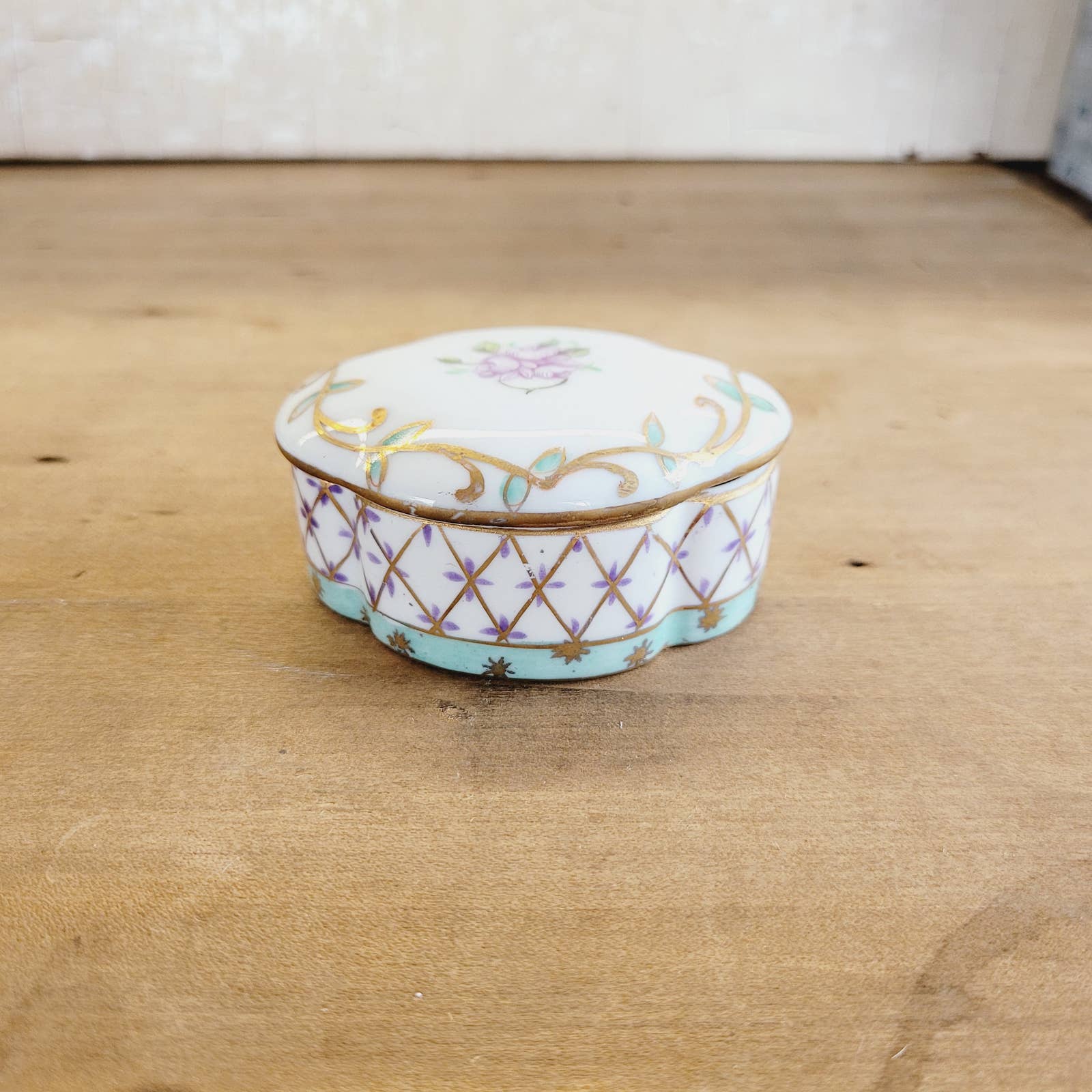 Hand painted. No chips, cracks, or repairs. 2 7/8" x 2 1/4" x 1 3/8". Marked Paris Royal on bottom.