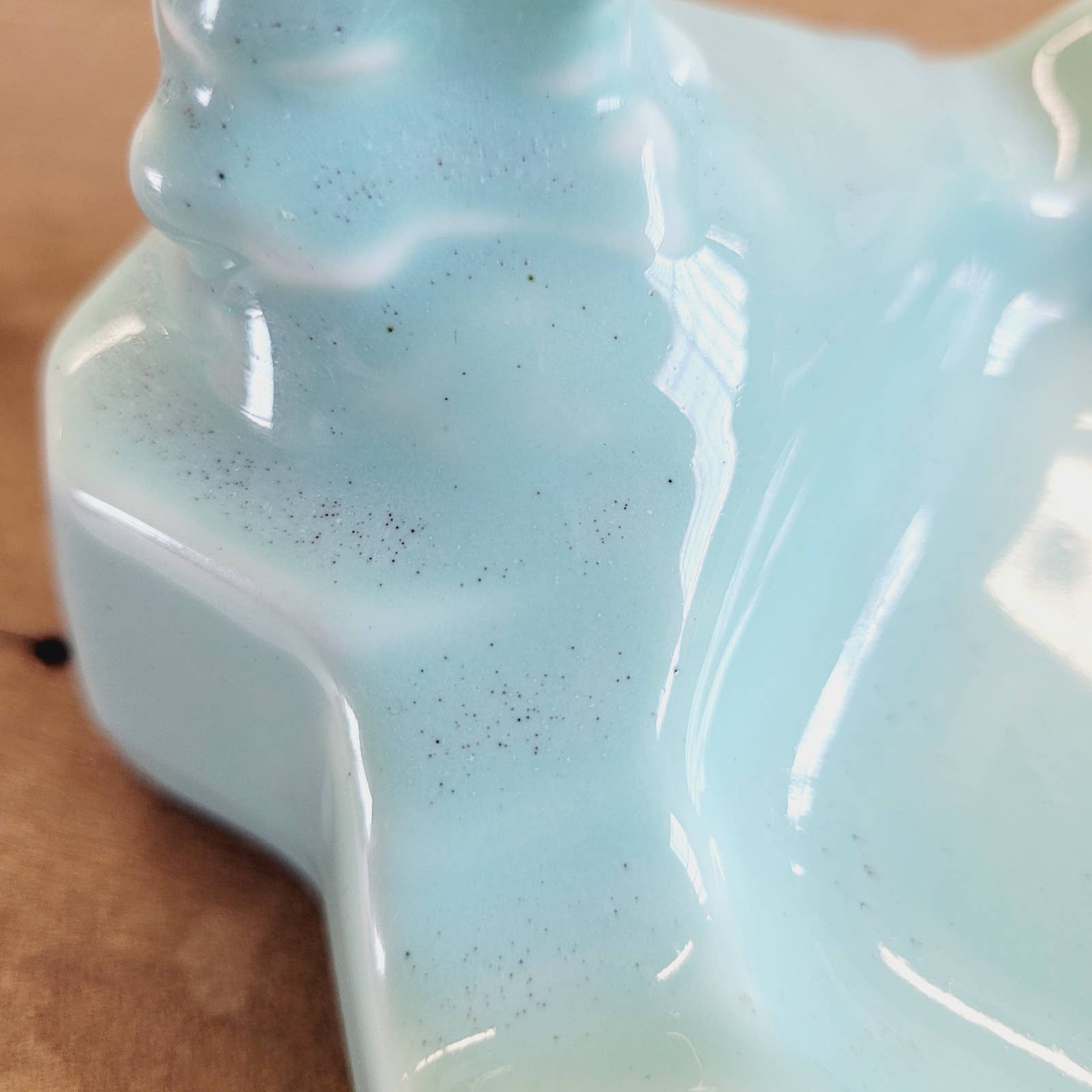 Light green with specks. No chips or cracks or repairs. Unmarked by maker. 5 1/8" x 6 5/8" x 6 3/4". Please see photos.