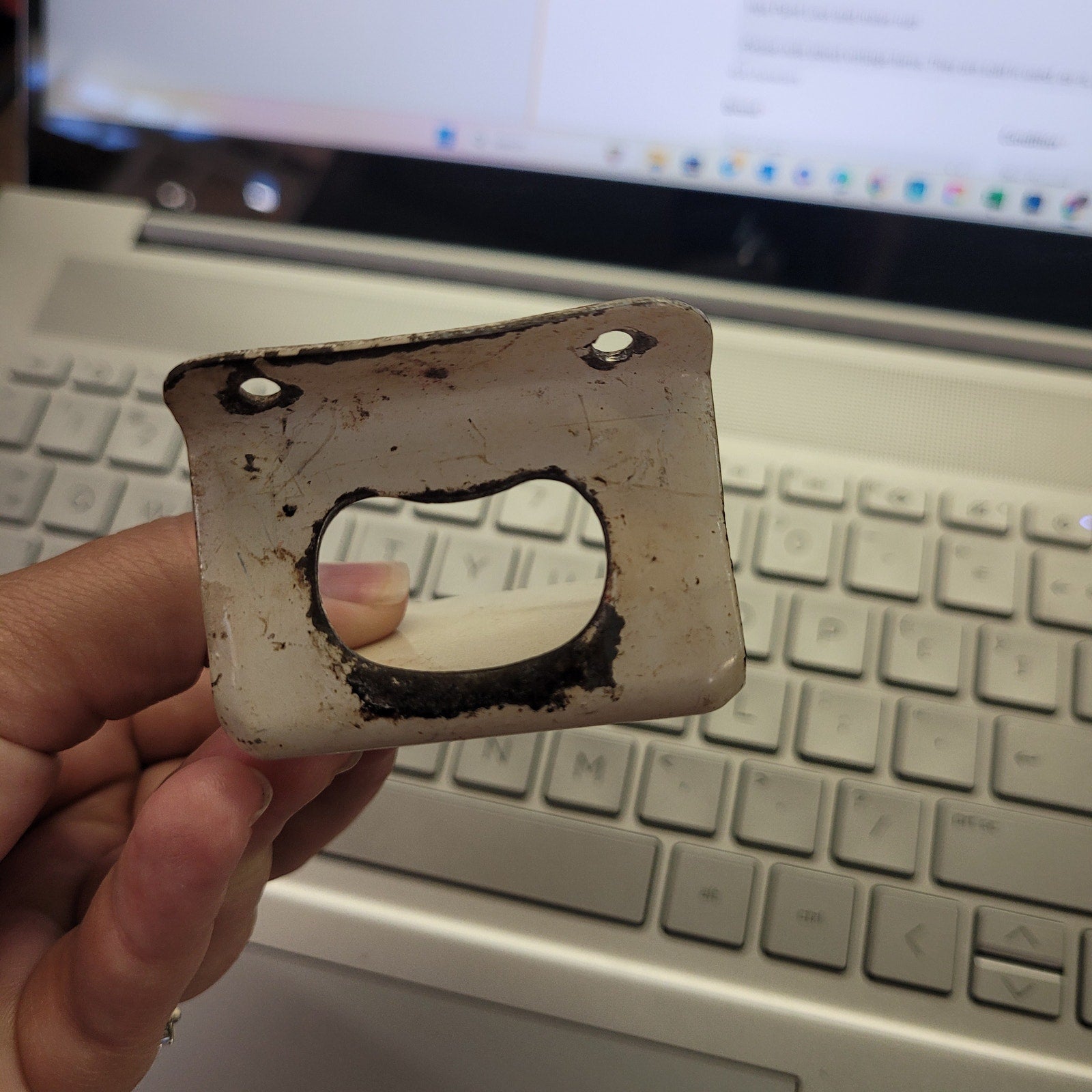 Introduce a touch of nostalgia to your space with this Vintage Coca-Cola Mounted Bottle Opener. Featuring a classic white design adorned with the iconic round Coca-Cola logo, this piece is both functional and stylish. Measuring 2 1/8" x 3 1/8", it's compact yet convenient for everyday use. Please note, this vintage gem may exhibit some paint loss and minor rust, adding to its authentic charm. Perfect for Coca-Cola enthusiasts or collectors of retro memorabilia, this mounted bottle opener is sure to become a cherished addition to any home or bar area.