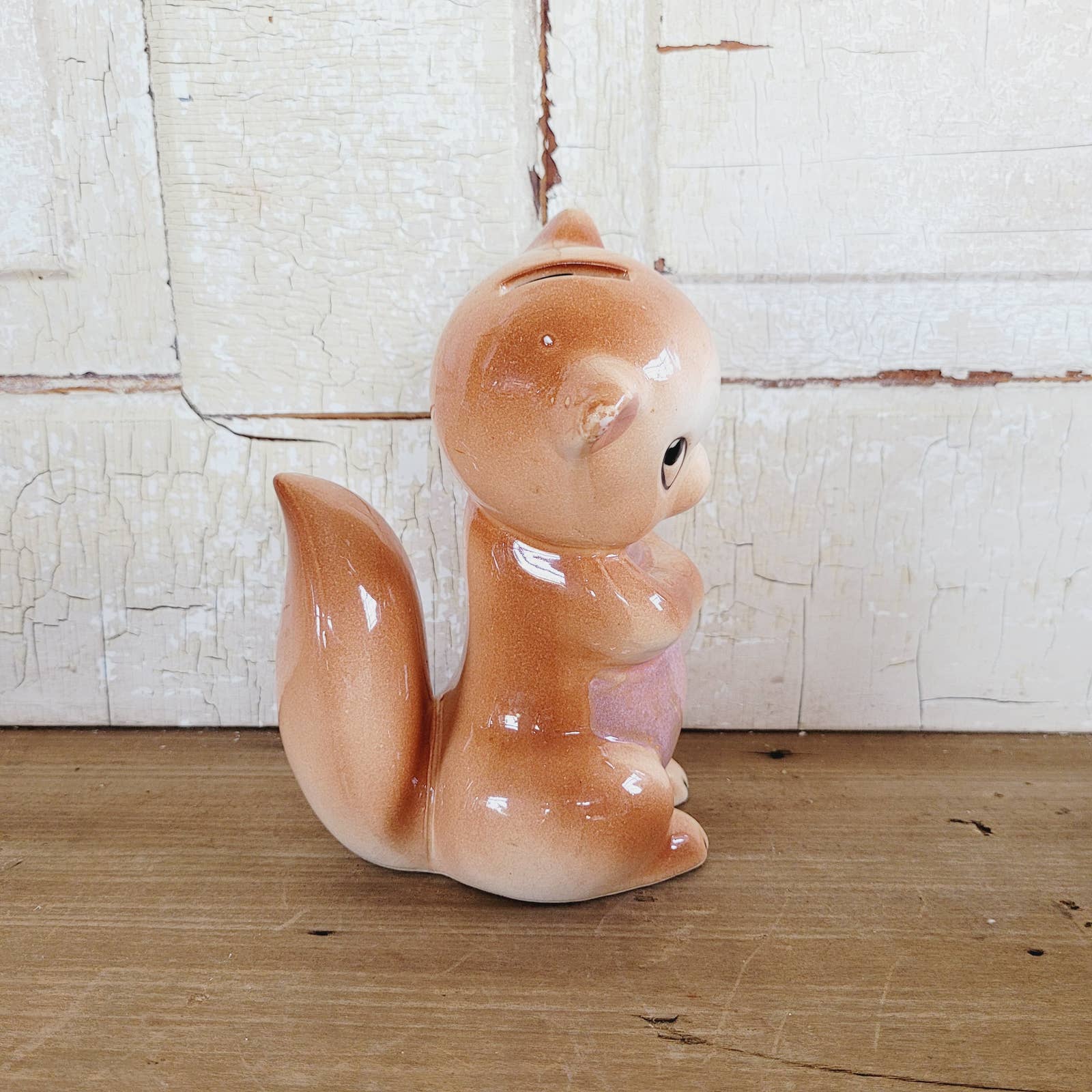 Vintage Squirrel Bank Pink Brown Handpainted Japan