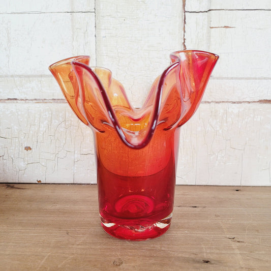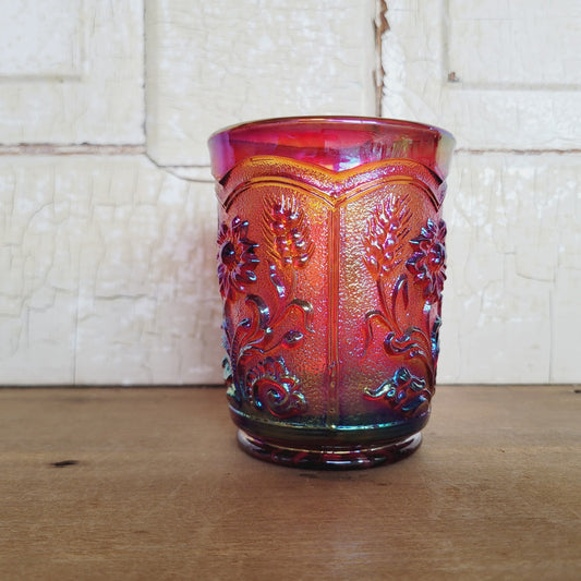 Imperial Glass Fieldflower Carnival Glass Tumbler Sunset Ruby Red Vintage