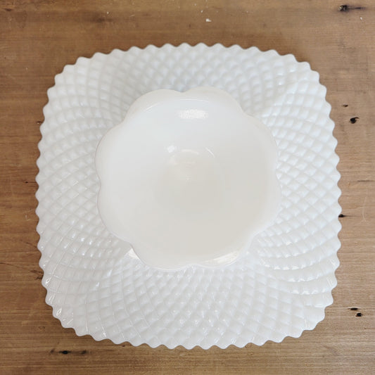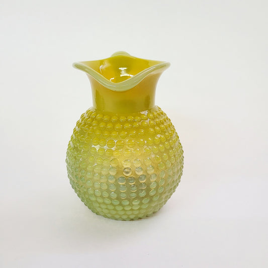 VINTAGE ART GLASS YELLOW GREEN HOBNAIL PITCHER